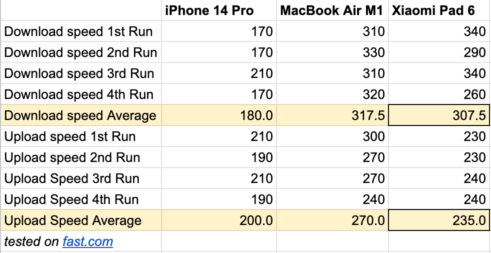 I did a couple of runs of the Xiaomi Pad 6 to check peak WiFi speeds compared to other devices.
